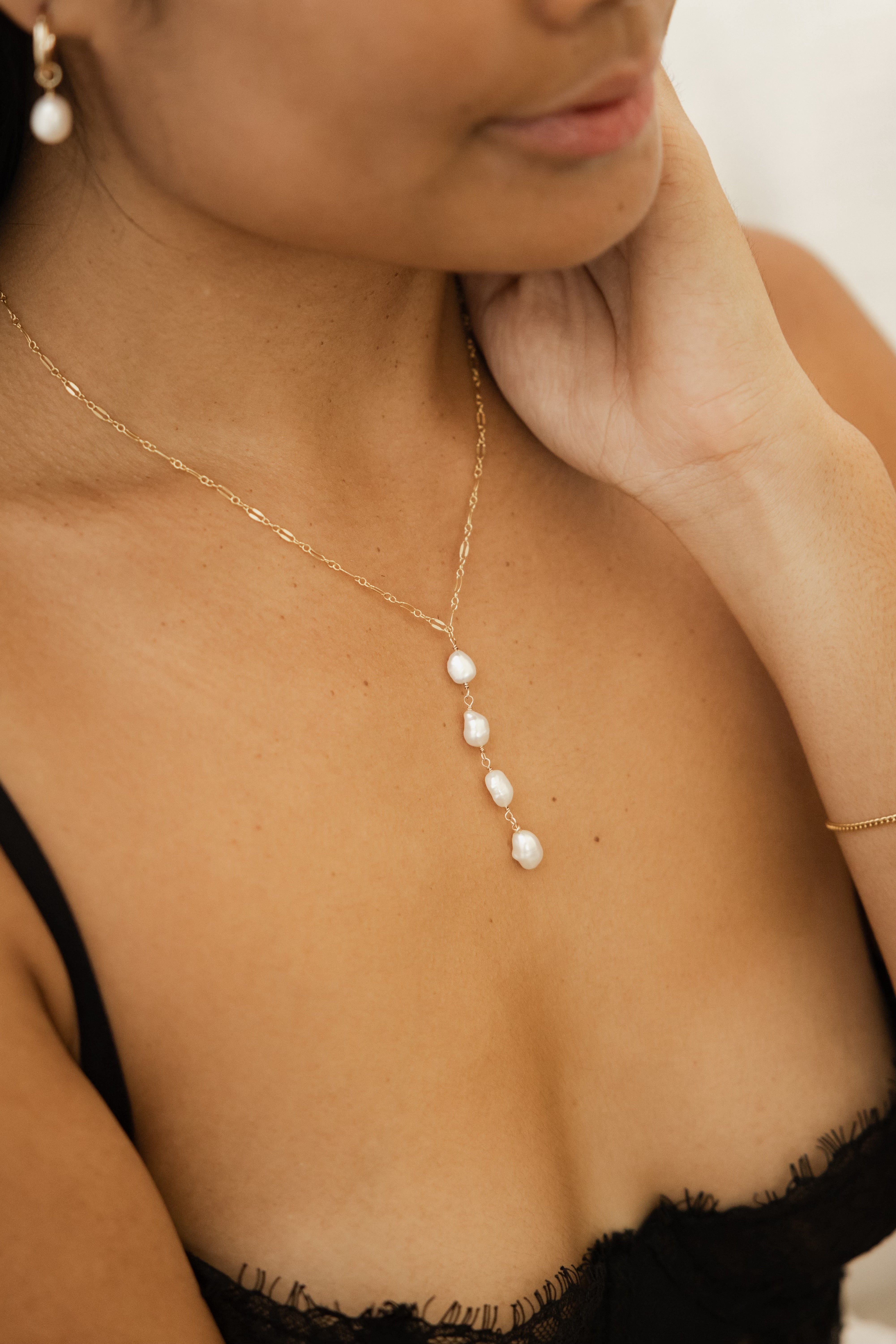 I absolutely love my drop down necklace! ✨ Its delicate design beautifully accentuates and elongates my neckline, giving it an elegant touch. 💖 It pairs perfectly with V-necks and low necklines, works for both casual and dressy outfits. This piece adds a lovely sophistication to any look—definitely a must-have! 🌟